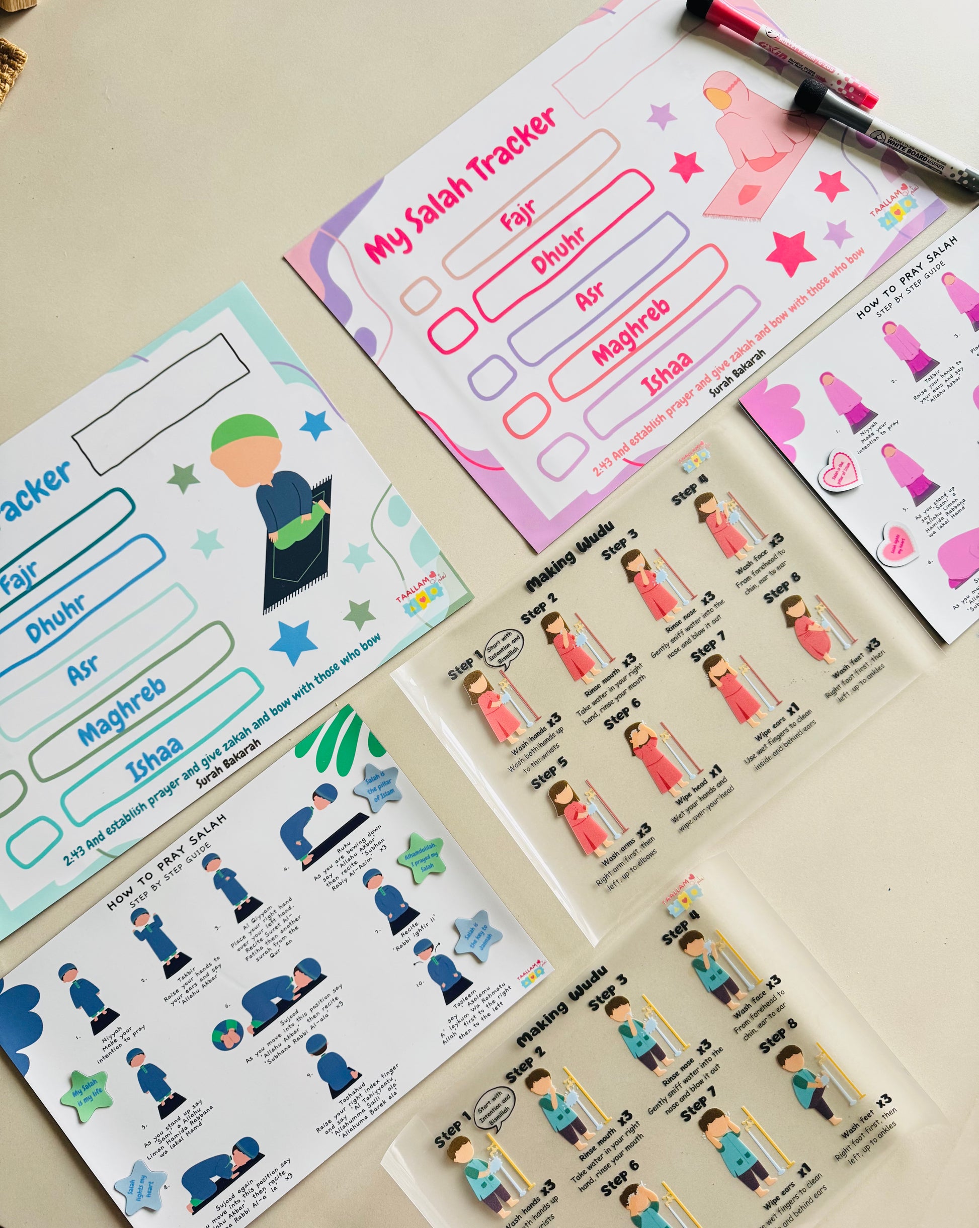 5 Small Hearts or Stars – Adorable stick-on pieces that can be placed on the Salah tracker as motivational rewards. Each one features a positive, uplifting message to encourage your child’s spiritual journey.
